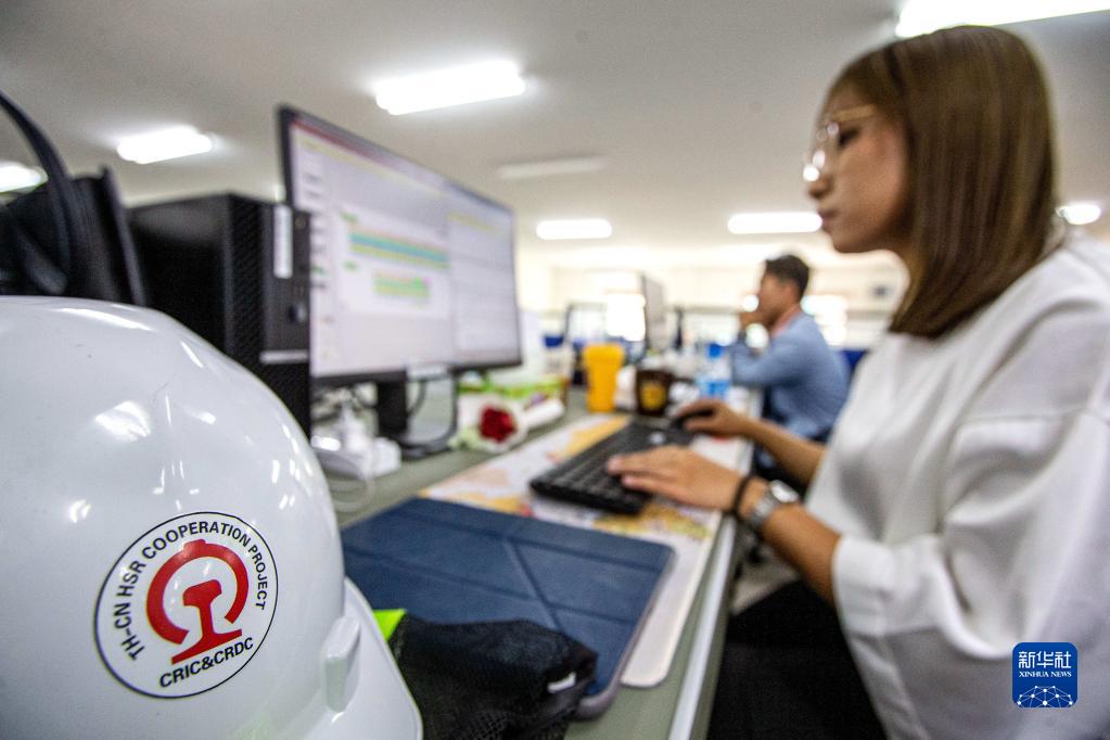 潘納洛在泰國中泰鐵路一期工程項目部監理總站工作(2月23日攝)。新華社記者 王騰 攝