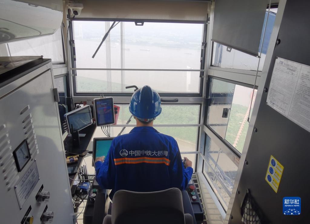 “90后”劉理來(lái)自湖南婁底,是中鐵大橋局馬鞍山公鐵兩用長(cháng)江大橋3號主塔墩的一名塔吊司機,主要負責鋼塔吊裝作業(yè)。
