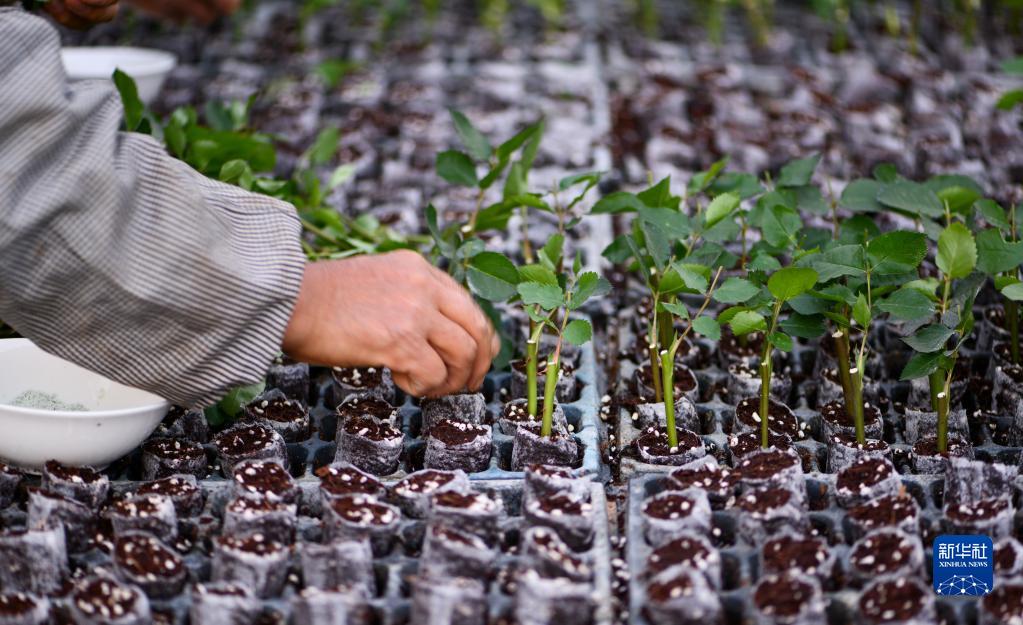 工人在云南錦科花卉工程研究中心進(jìn)行玫瑰扦插育苗(4月3日攝)。