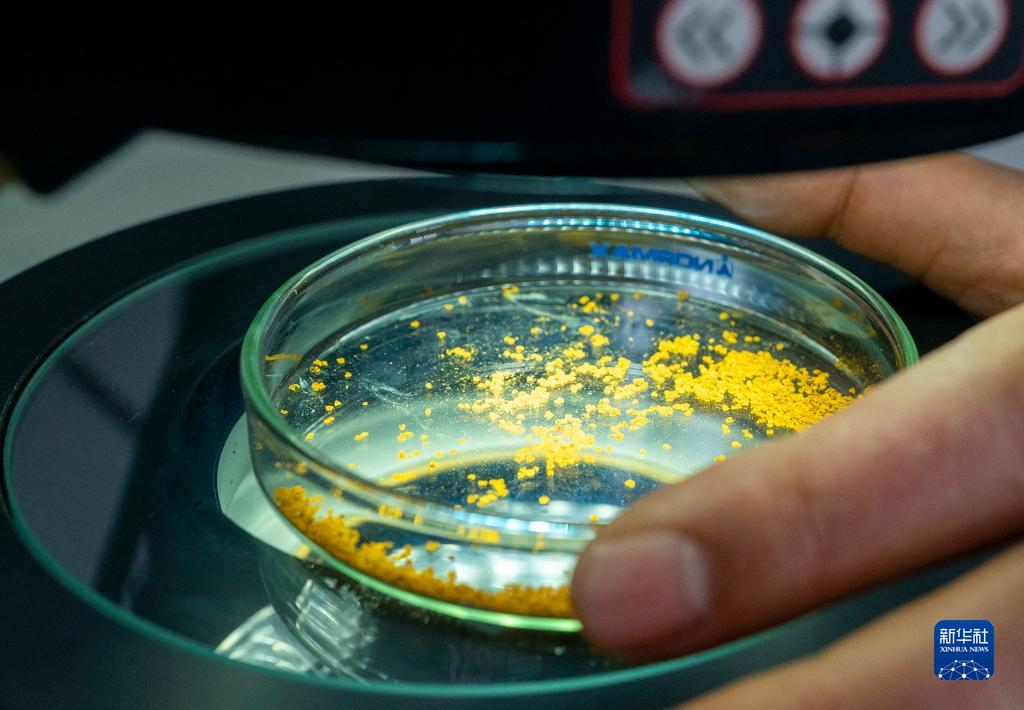 這是在顯微鏡下被觀(guān)察的月季花粉(4月30日攝)。