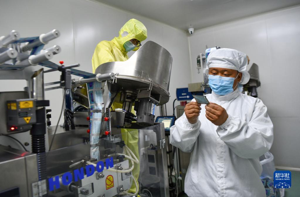 普窮次仁在檢查藏藥內包生產(chǎn)工序(4月20日攝)。
