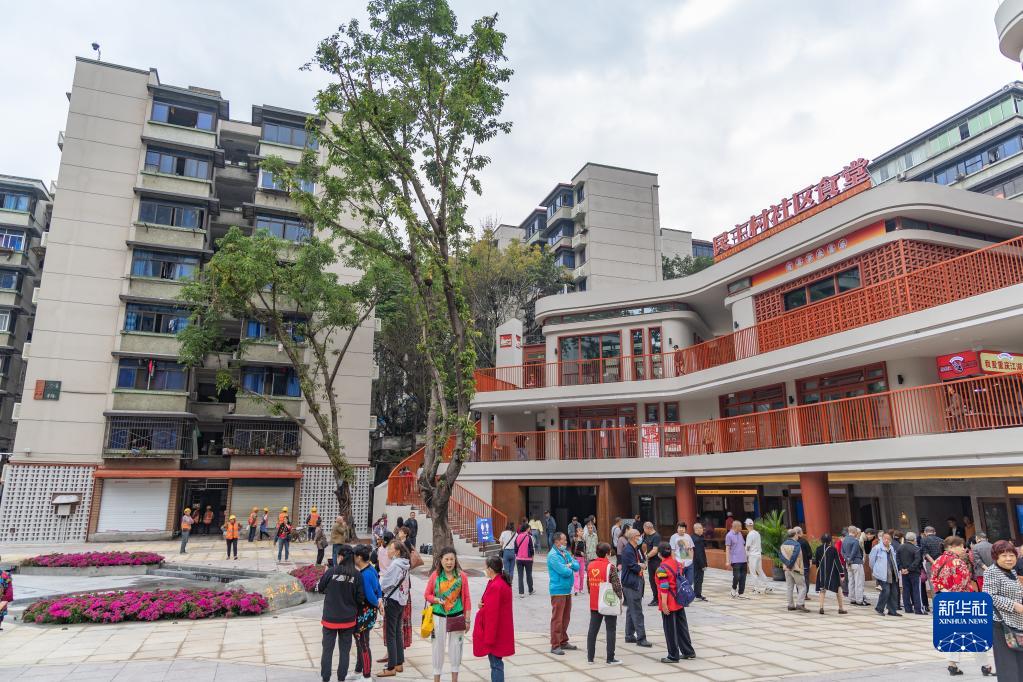 4月28日,重慶市九龍坡區謝家灣街道民主村片區城市更新項目(一期)正式竣工亮相,市民游客前來(lái)打卡。