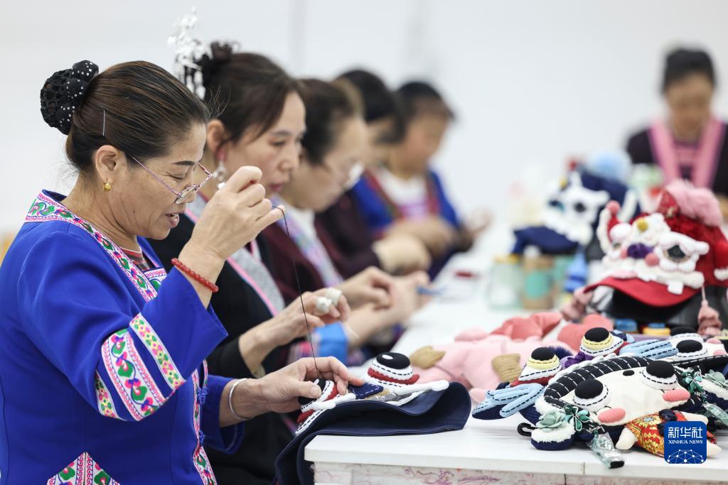 4月26日,繡娘在位于廣西桂林市龍勝各族自治縣的一處生產(chǎn)車(chē)間趕制產(chǎn)品。