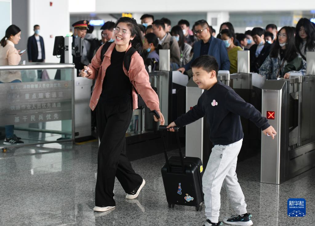 4月29日,旅客在安徽阜陽(yáng)西站通過(guò)閘機檢票準備乘車(chē)。
