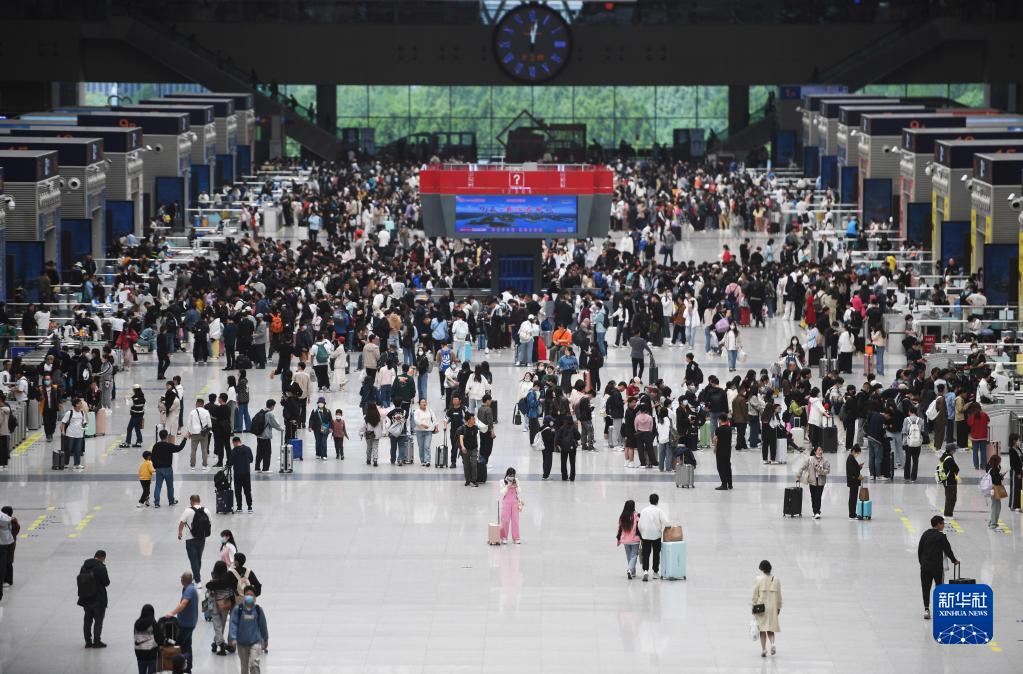 4月29日,旅客在鄭州東站候車(chē)大廳內候車(chē)。