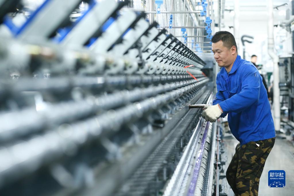 4月29日,技術(shù)工人在山東省青島市即墨區即發(fā)龍山工業(yè)園的一處數字化智能紡紗工廠(chǎng)安裝生產(chǎn)設備。