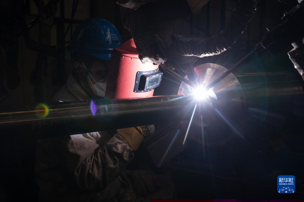 4月29日,工人在哈電集團哈爾濱汽輪機廠(chǎng)有限責任公司車(chē)間內生產(chǎn)作業(yè)。