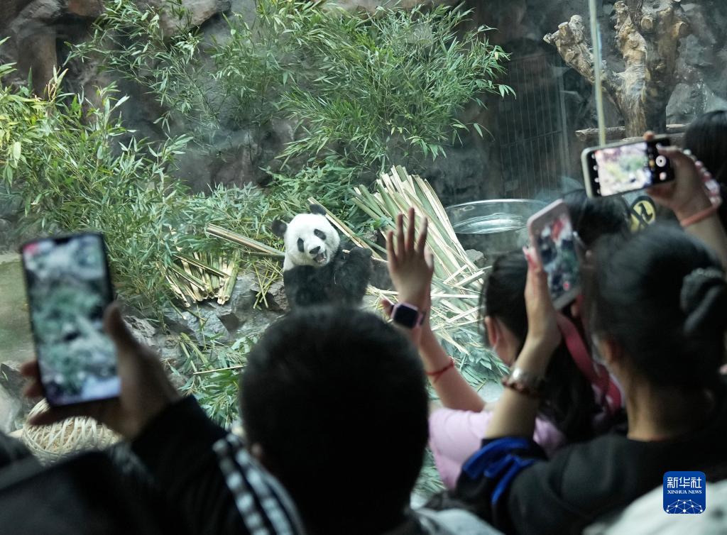 五一假期,北京動(dòng)物園大熊貓館的多只憨態(tài)可掬的“國寶”大熊貓,吸引眾多游客前來(lái)觀(guān)賞。