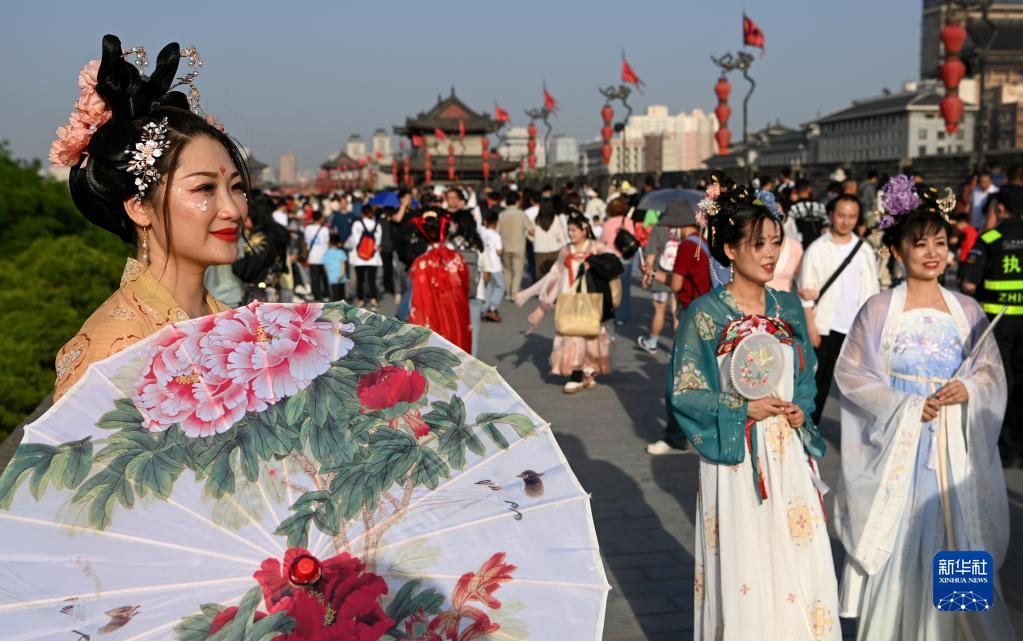4月30日,游客在西安城墻景區參觀(guān)游覽。