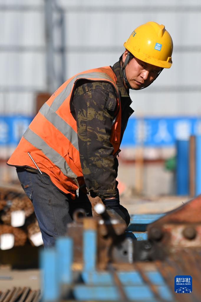 5月1日,在浙江省杭州市臨平區一個(gè)項目工地,中建三局的建設者在施工中。