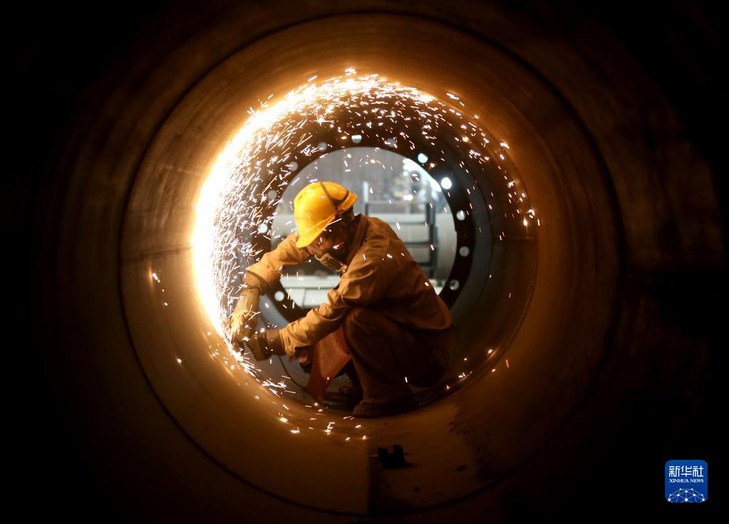 5月1日,在四川省眉山市一家鋼結構公司加工車(chē)間內,工人在趕制產(chǎn)品訂單。