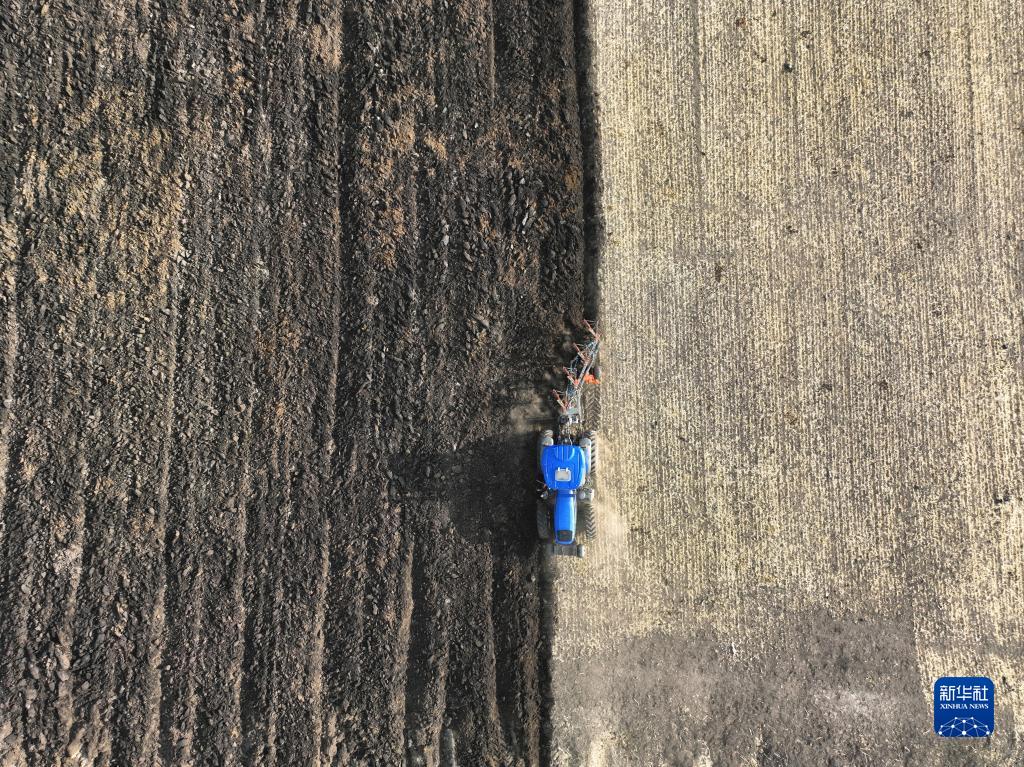 5月1日,河北省承德市豐寧滿(mǎn)族自治縣大灘鎮扎拉營(yíng)村的農民在耕地(無(wú)人機照片)。