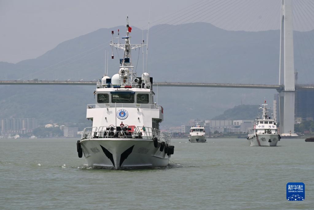 5月1日,參加2023年?yáng)|海海區伏季休漁專(zhuān)項執法行動(dòng)的執法船啟航出海開(kāi)展執法巡查。