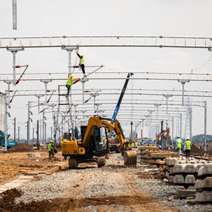 5月1日,在印度尼西亞萬(wàn)隆,建設者在雅萬(wàn)高鐵德卡魯爾動(dòng)車(chē)所施工現場(chǎng)作業(yè)。
