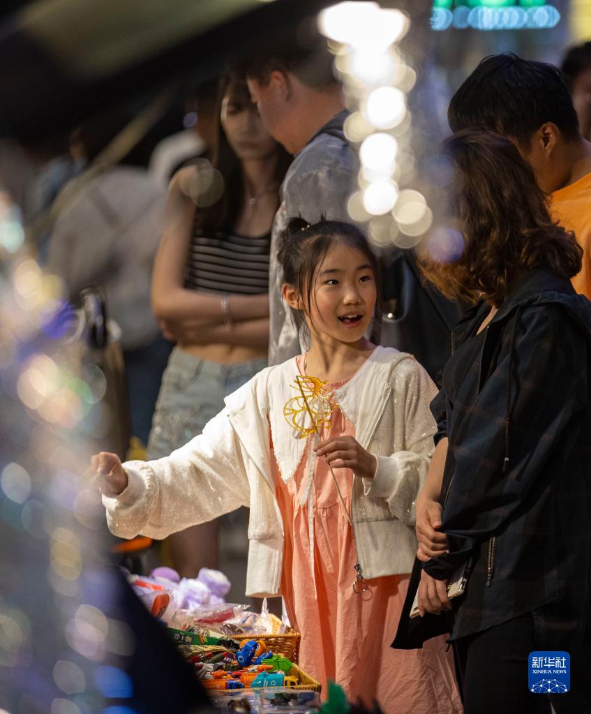 5月2日,游客在寧夏銀川市金鳳區閱彩城中街購買(mǎi)商品。
