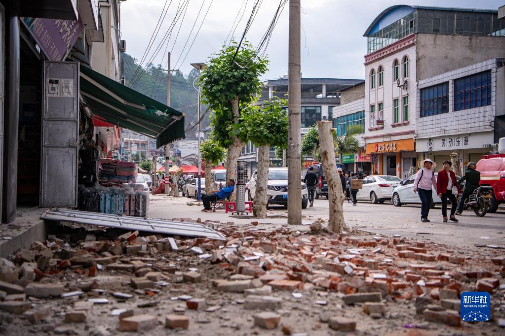云南省保山市隆陽(yáng)區瓦窯鎮一處受損的沿街房屋(5月3日攝)。