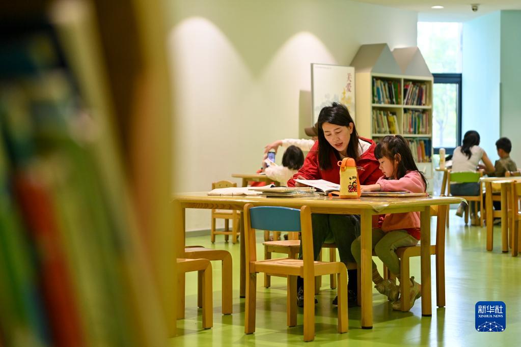5月3日,家長(cháng)和小朋友在太原市圖書(shū)館閱讀。