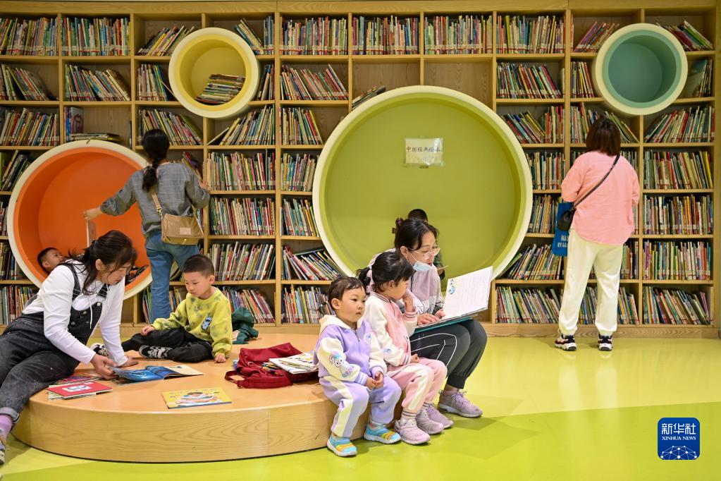 5月3日,家長(cháng)和小朋友在太原市圖書(shū)館閱讀。