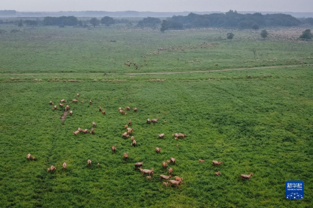 石首麋鹿國家級自然保護區成立于1991年,這里牧草豐富,濕地生態(tài)系統完整。30多年間,麋鹿種群繁衍擴散,逐漸形成了保護區、東升三合垸、小河楊波坦及湖南洞庭湖4個(gè)小種群,從最初引進(jìn)的64頭發(fā)展到2500余頭,全部實(shí)現自然繁衍,恢復了野生習性。