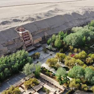 4月25日拍攝的莫高窟窟區(無(wú)人機照片)。