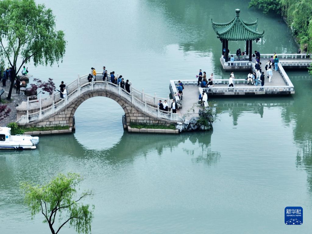 5月3日,游客在江蘇揚州瘦西湖風(fēng)景區游玩(無(wú)人機照片)。