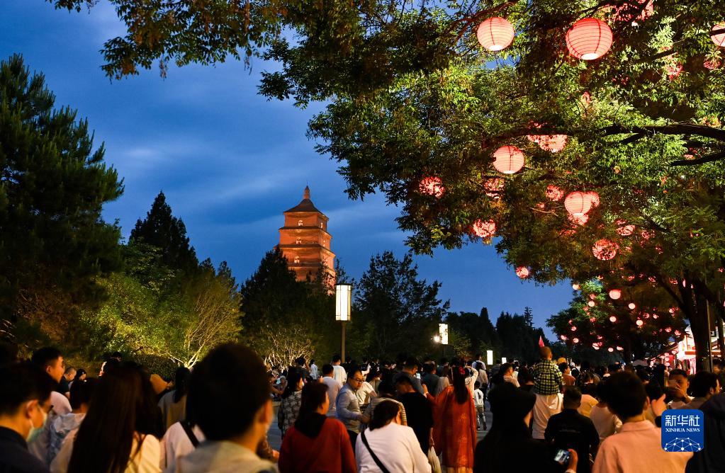 5月1日,游客在西安大雁塔文化休閑景區參觀(guān)游覽。