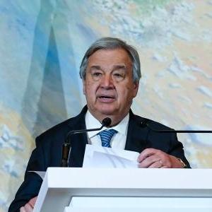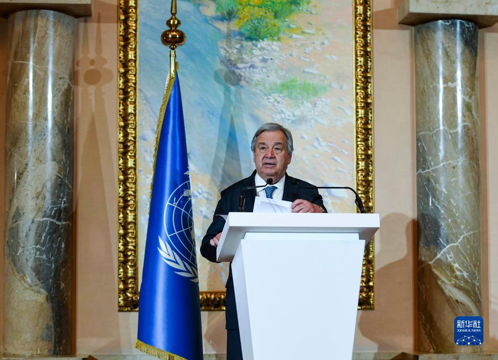 5月2日,聯(lián)合國秘書(shū)長(cháng)古特雷斯在卡塔爾首都多哈發(fā)表講話(huà)。