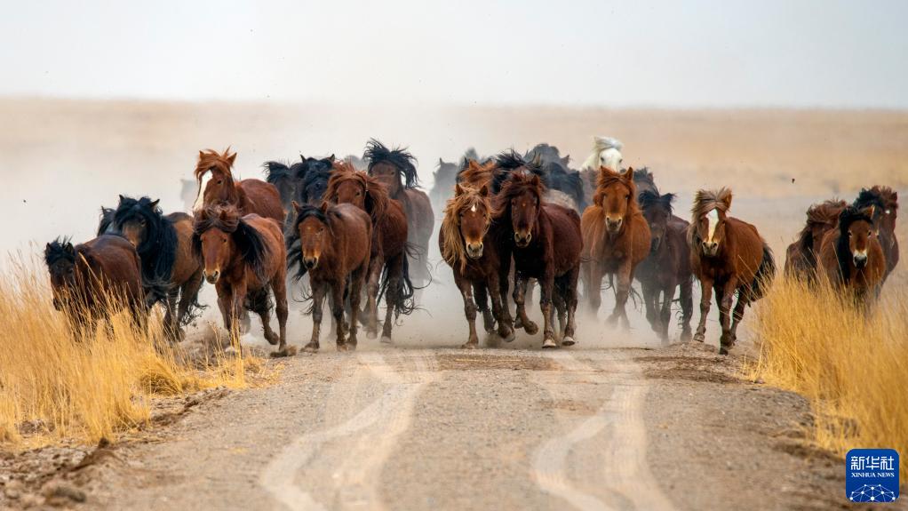 日前,甘肅省酒泉市阿克塞哈薩克族自治縣阿伊納鄉牧民趕著(zhù)馬群轉往夏季牧場(chǎng),以確保草原得到休養生息。近年來(lái),阿克塞縣在發(fā)展畜牧業(yè)同時(shí),更加注重草原生態(tài)環(huán)境保護。