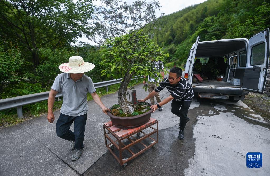 5月4日,90后青創(chuàng )客金志鵬(右)在香榧種植基地搬運香榧盆景。金志鵬是諸暨市東白湖鎮“鄉村CEO”之一,他和他的團隊通過(guò)將香榧樹(shù)種進(jìn)花盆里,培育出香榧盆景,推廣衍生香榧產(chǎn)業(yè)富民鏈條,帶動(dòng)周邊村民加入其中。