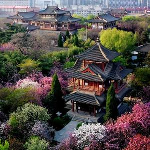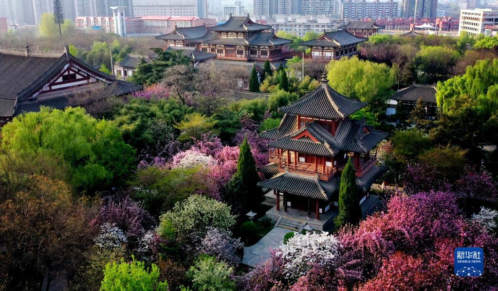 西安市青龍寺遺址景區內櫻花盛開(kāi)(3月31日,無(wú)人機照片)。