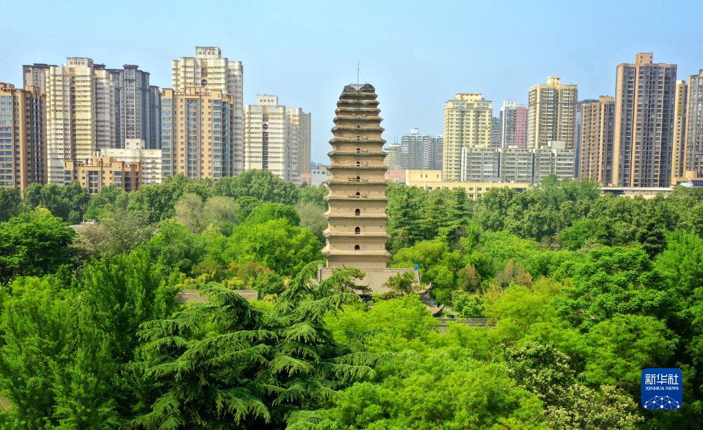 西安小雁塔(4月18日攝,無(wú)人機照片)。