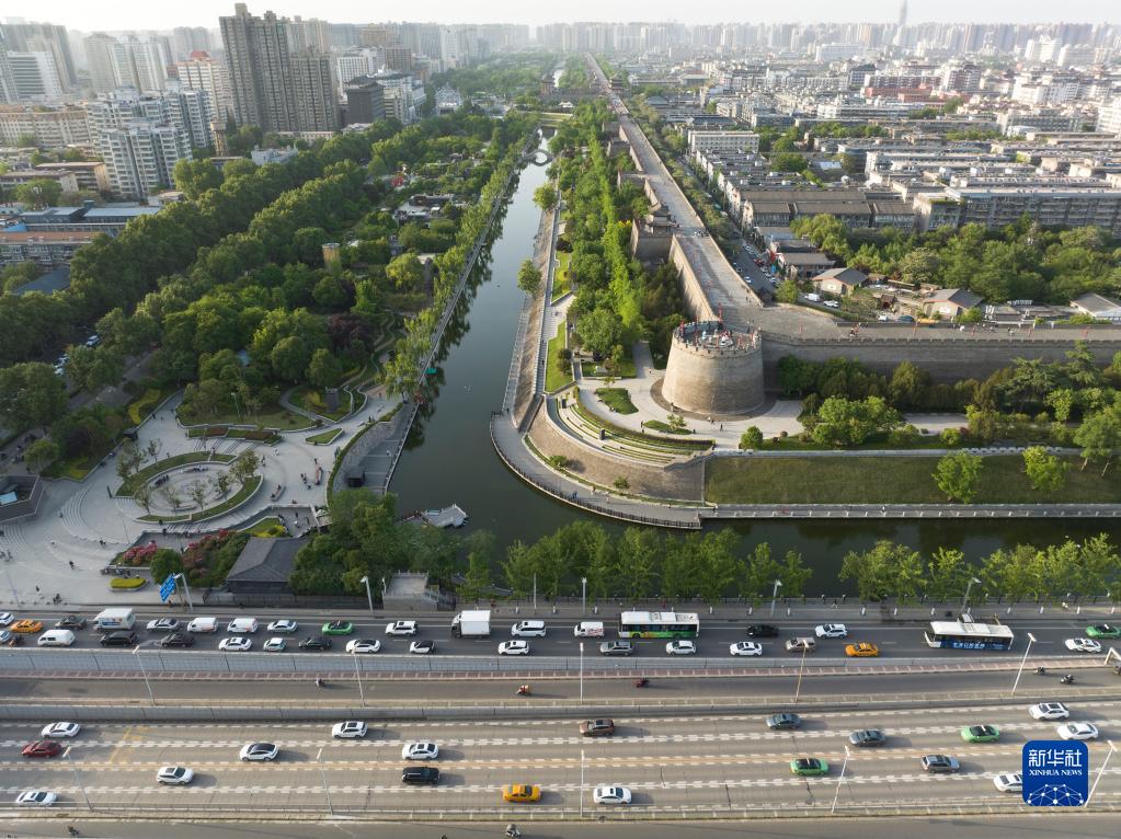 西安城墻西南角(4月25日攝,無(wú)人機照片)。