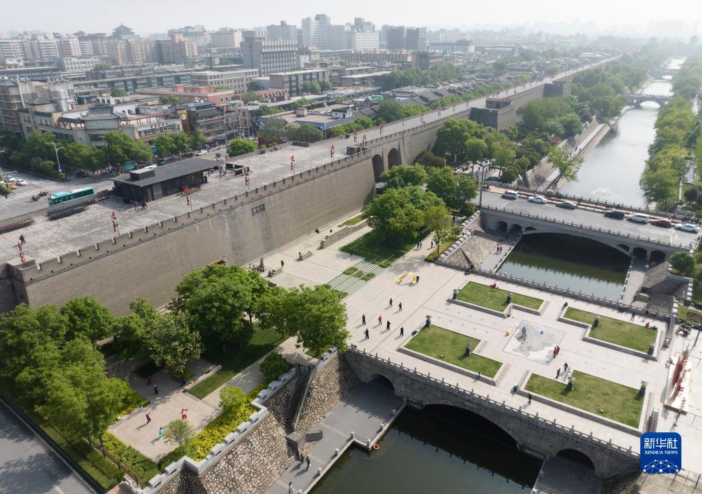西安城墻含光門(mén)(4月25日攝,無(wú)人機照片)。