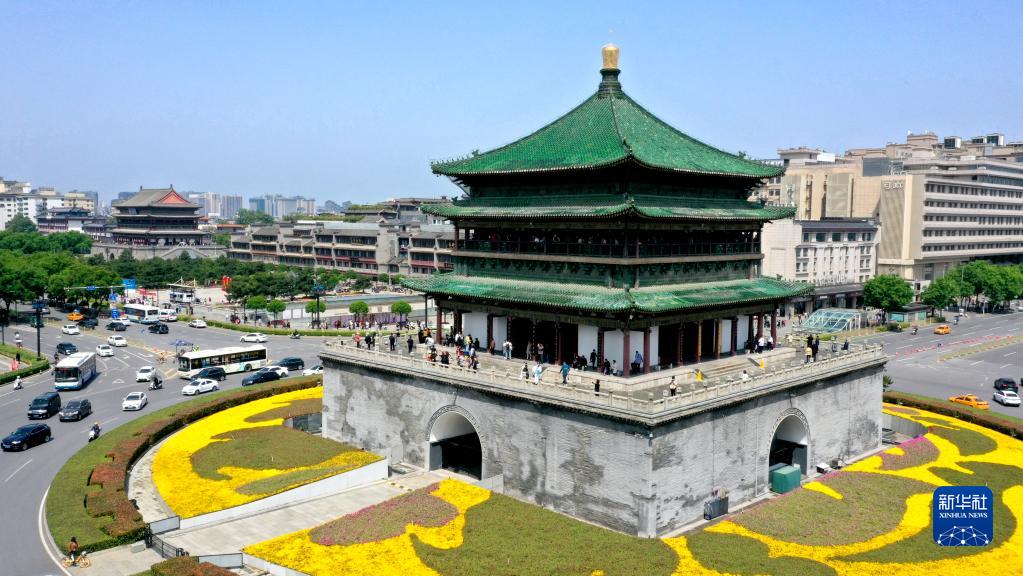 西安鐘樓(4月25日攝,無(wú)人機照片)。