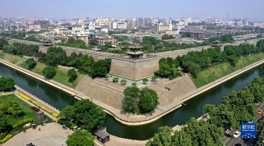 西安城墻東南城角(4月19日攝,無(wú)人機照片)。