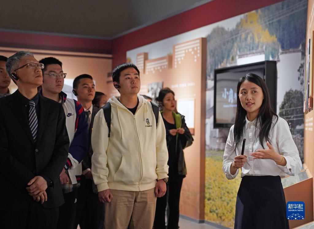 4月28日,在上海市檔案館的展廳內,編研部工作人員戴舒(右一)為參觀(guān)者講解。檔案館的青年組成“上海市檔案館青年檔案文化志愿宣講團隊”,常年擔任館內展覽的志愿講解員。