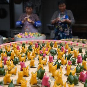 臨近立夏節氣,浙江省杭州市臨平區塘棲鎮丁山河村的村民們做米塑“立夏狗”、腌灰鴨蛋、搭土灶蒸“野米飯”等,用江南水鄉傳統的民俗迎接初夏。