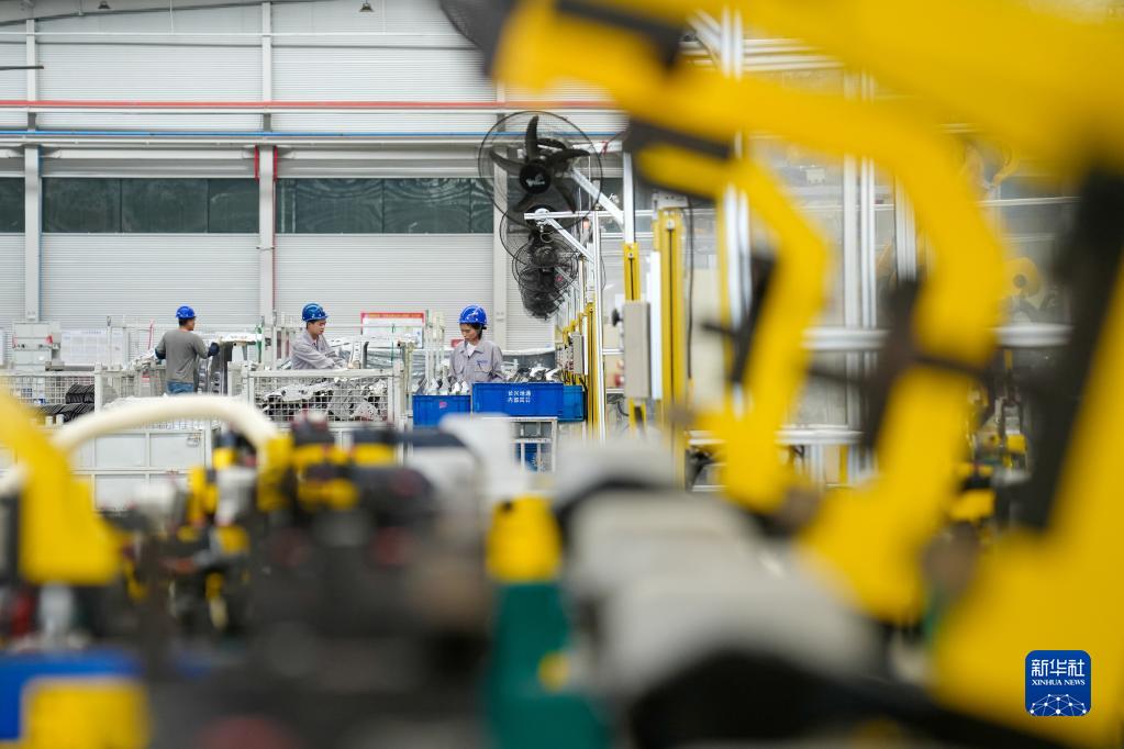5月4日,在浙江省湖州市長(cháng)興經(jīng)濟技術(shù)開(kāi)發(fā)區一家汽車(chē)部件有限公司,工人生產(chǎn)新能源汽車(chē)配件。