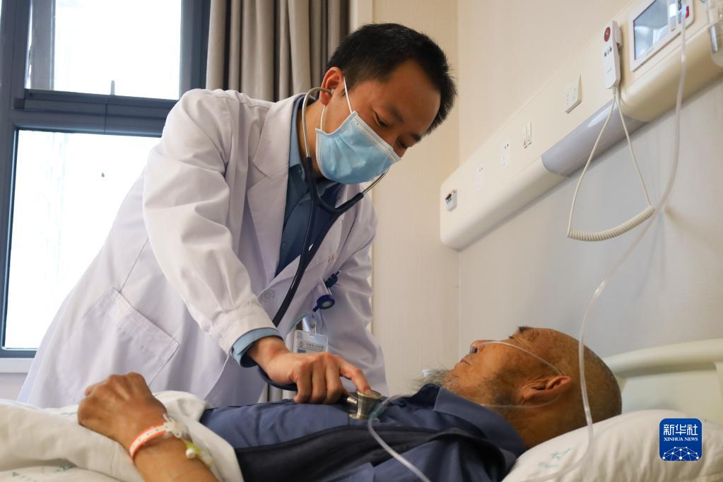 5月4日,曹云山在病房?jì)葹榛颊邫z查。