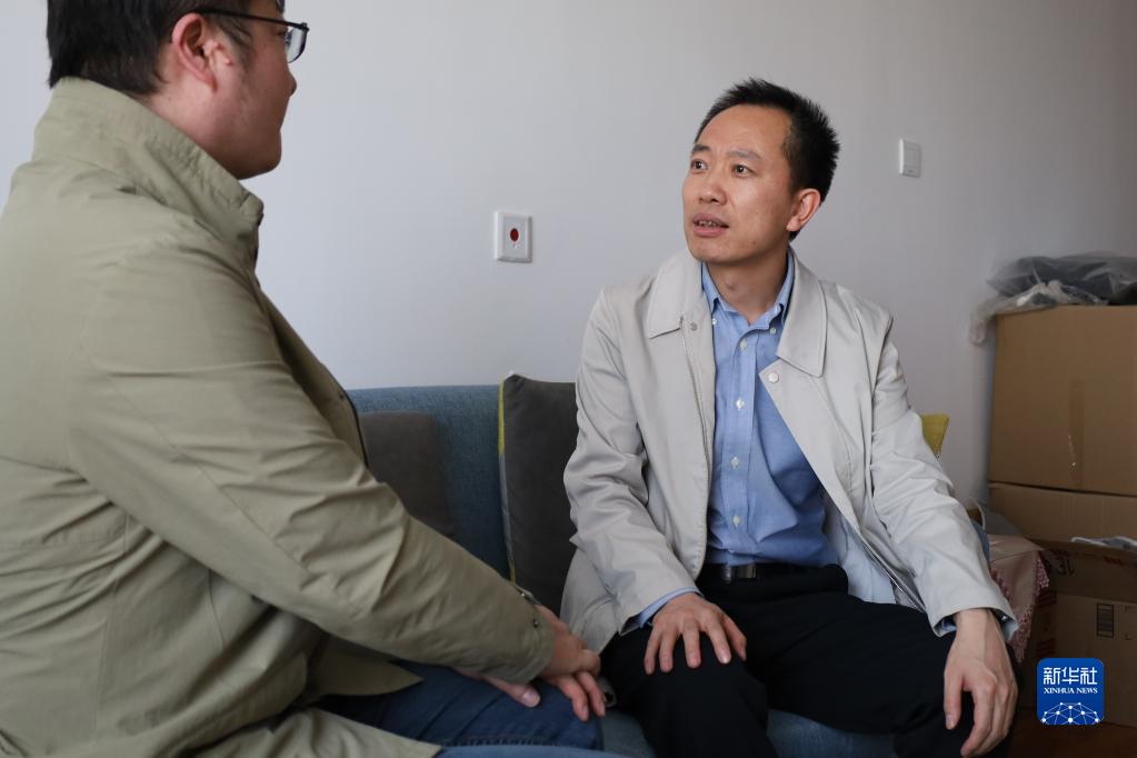 4月12日,曹云山(右)在肺動(dòng)脈高壓疾病患者家里走訪(fǎng)。