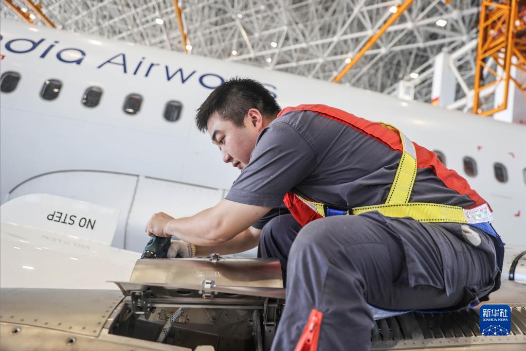 5月5日,海航技術(shù)旗下大新華飛機維修服務(wù)有限公司的機務(wù)維修人員對進(jìn)境飛機進(jìn)行檢修。