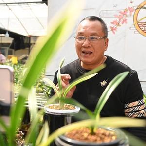 3月1日,在福建漳州,臺農許傳輝在“青心蘭園”里直播“帶貨”。