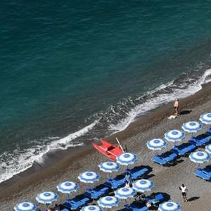 5月4日,游客在意大利阿瑪爾菲海邊休閑。