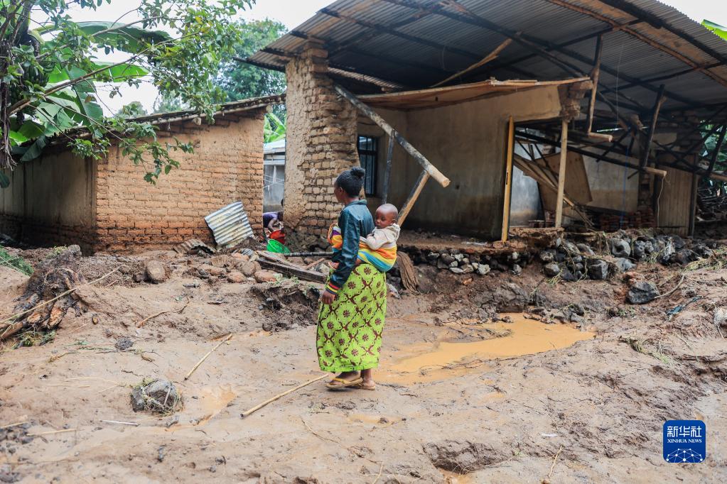 5月4日,居民站在盧旺達西方省一處受損的房屋旁。