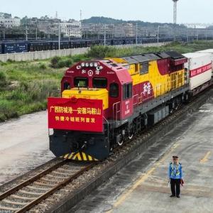 當日,首趟“防城港-馬鞍山”冷鏈班列搭載8個(gè)冷鏈集裝箱從廣西防城港站發(fā)車(chē),前往安徽馬鞍山站。這批貨物將經(jīng)馬鞍山市分撥至周邊的生鮮市場(chǎng),讓當地百姓可以品嘗到來(lái)自北部灣的海鮮產(chǎn)品。至此,廣西防城港開(kāi)行的冷鏈班列線(xiàn)路升至9條。