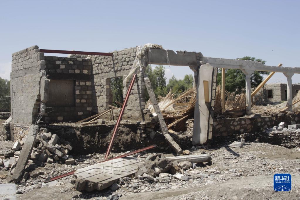 這是5月6日在阿富汗楠格哈爾省拍攝的遭強降雨和洪水損毀的房屋廢墟。