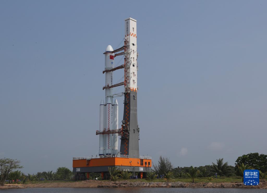 5月7日,天舟六號貨運飛船與長(cháng)征七號遙七運載火箭組合體在垂直轉運中。