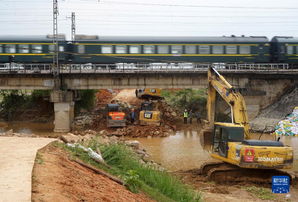 江西豐城京九線(xiàn)鐵路橋下河堤潰口順利合龍