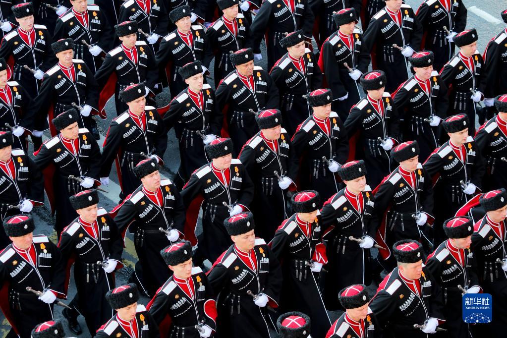 5月7日,在俄羅斯首都莫斯科,士兵列隊行進(jìn)。