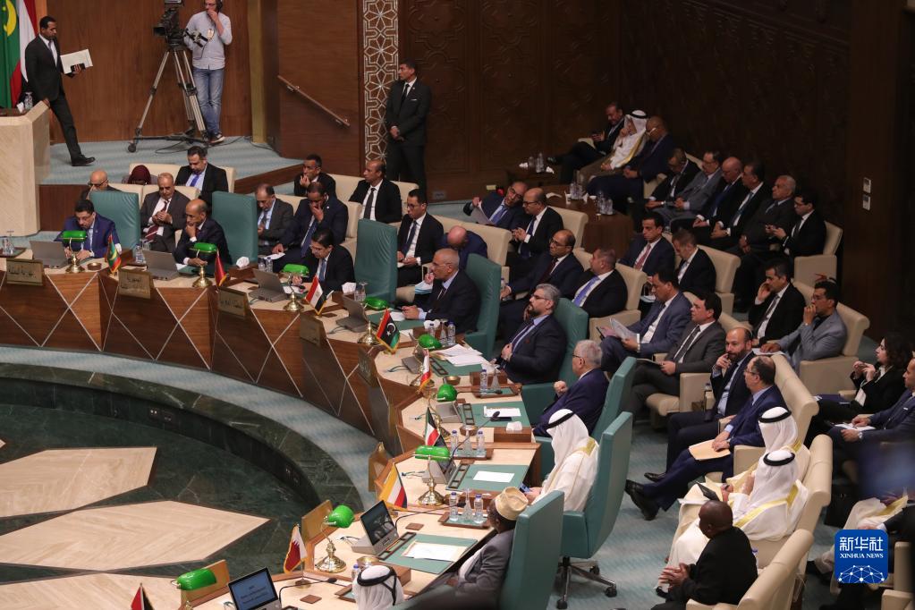 這是5月7日在埃及開(kāi)羅拍攝的阿拉伯國家聯(lián)盟外長(cháng)級特別會(huì )議現場(chǎng)。